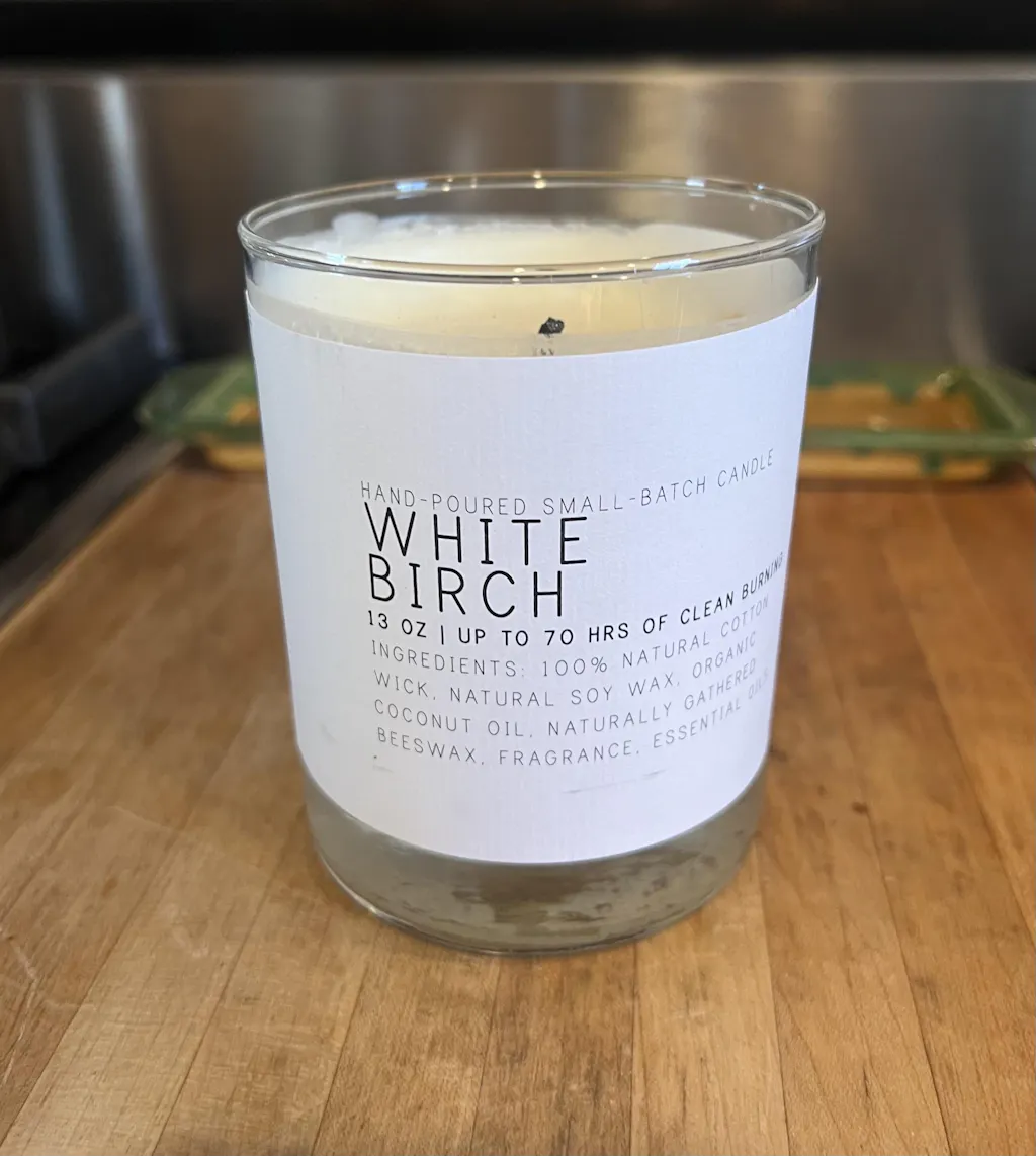 I have purchased probably 10 or 15 of these candles from you, this last time was the first time I purchased from you directly. The wick on this candle is probably maybe a quarter inch probably less than that off center so one side is not burning well just building up on the side other than that I love the white birch and when I was searching for the other day, was whether or not you have a white birch room spray.